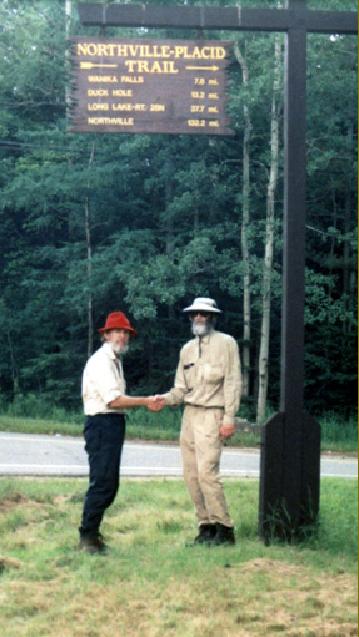 Dave Koschnick (left) and Jerry Wiley (right) at the official end of the Northville to Lake Placid Trail -- July 17, 2001
